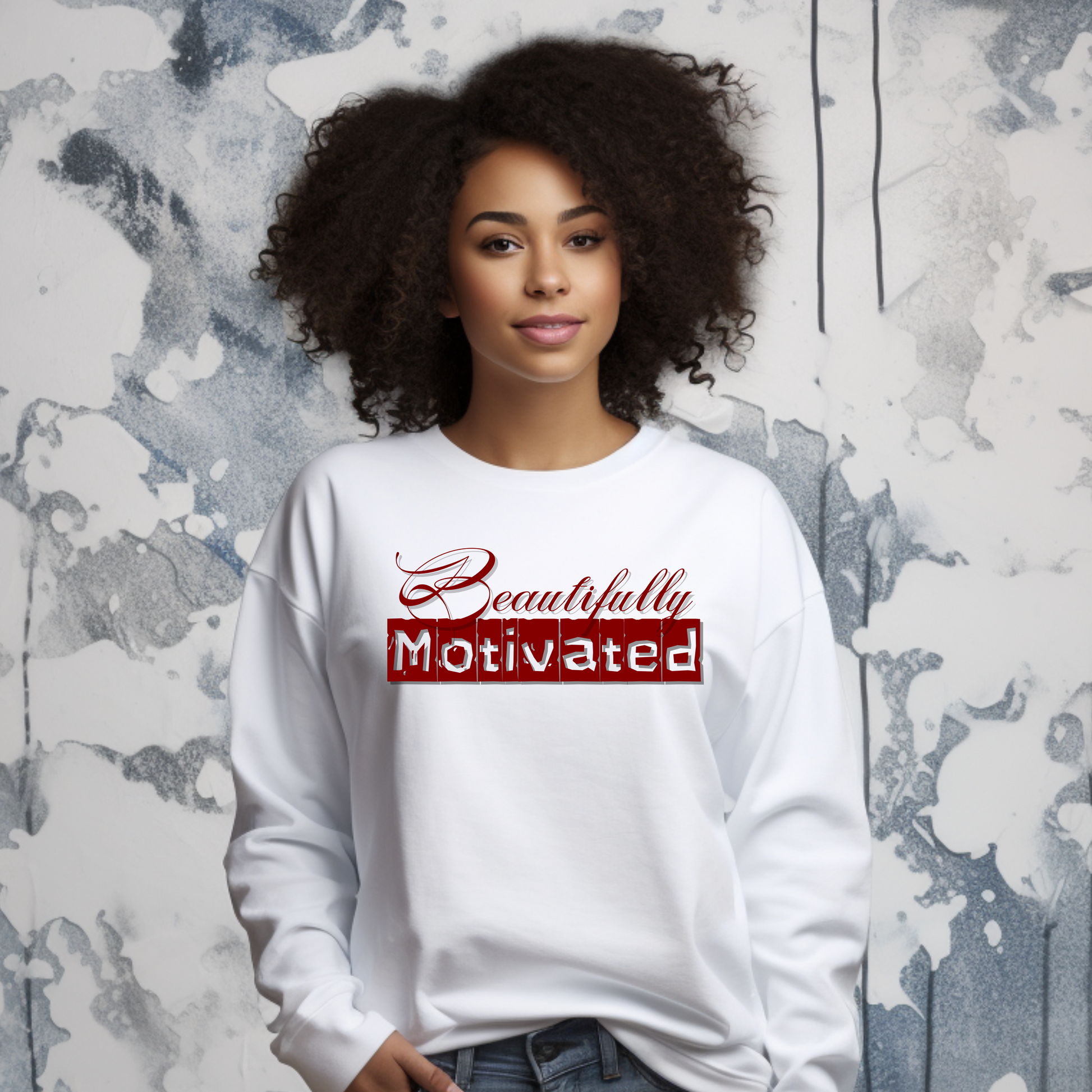 “Beautifully Motivated” — a statement that blends grace with grit. The high-resolution print pops with clarity and durability, ensuring your message stays vibrant wash after wash.