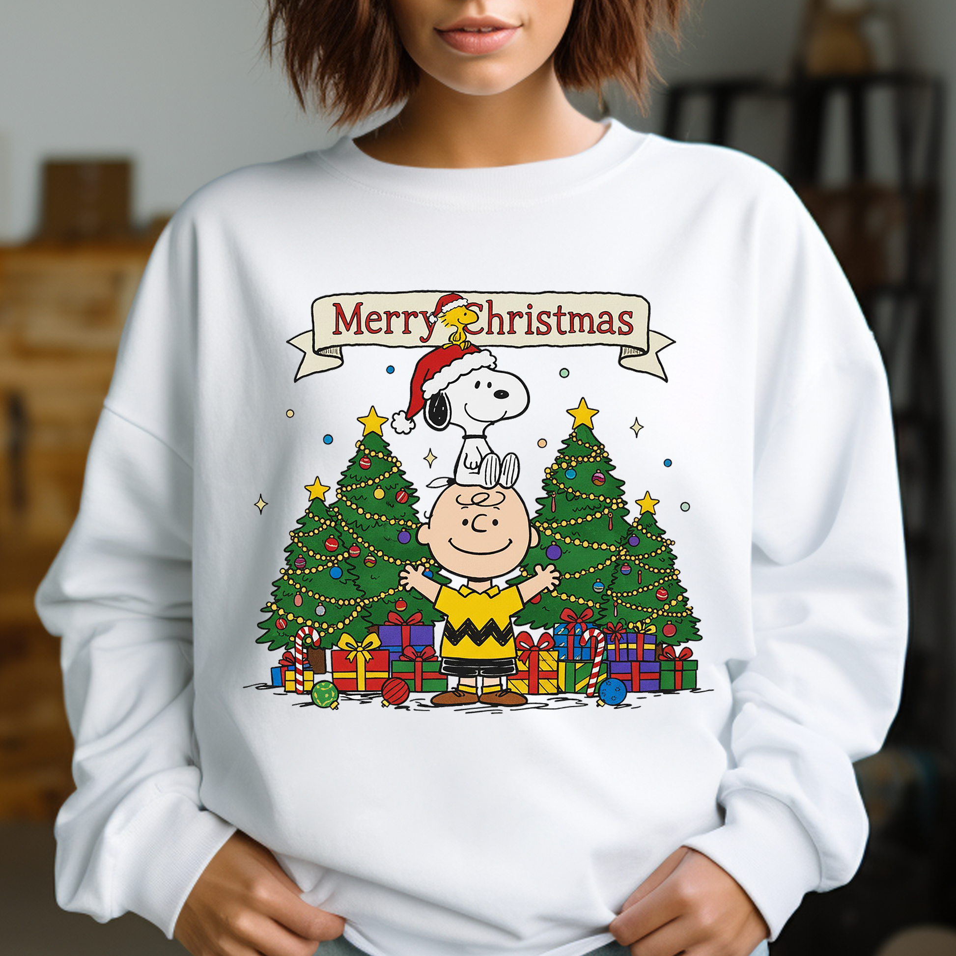 Snoopy’s chill. Charlie Brown’s trying his best. And together? They’re front and center on this cozy crewneck that says “I’m festive, but make it iconic.”